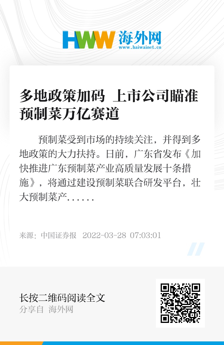 3月25日,广东省政府发布《加快推进广东预制菜产业高质量发展十条措施》(简称《措施》),将通过建设预制菜联合研发平台,壮大预制菜产业集群,培育预制菜示范企业等措施推动广东预制菜产业的发展。