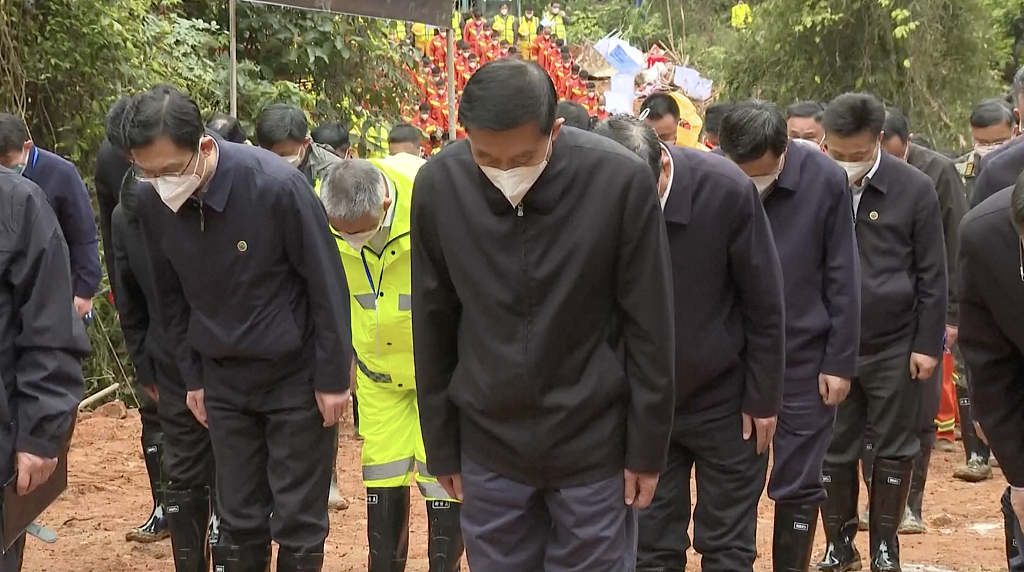 3月27日下午,广西梧州,“3·21”东航MU5735航空器飞行事故遇难者集体哀悼活动在事发地搜救现场举行,对遇难者表示哀悼。图片来源:视频截图