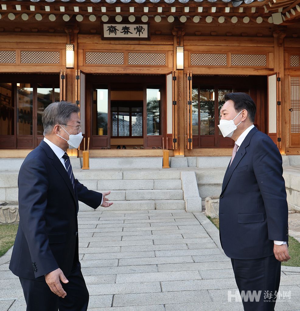 韩国总统文在寅与候任总统尹锡悦正式会面