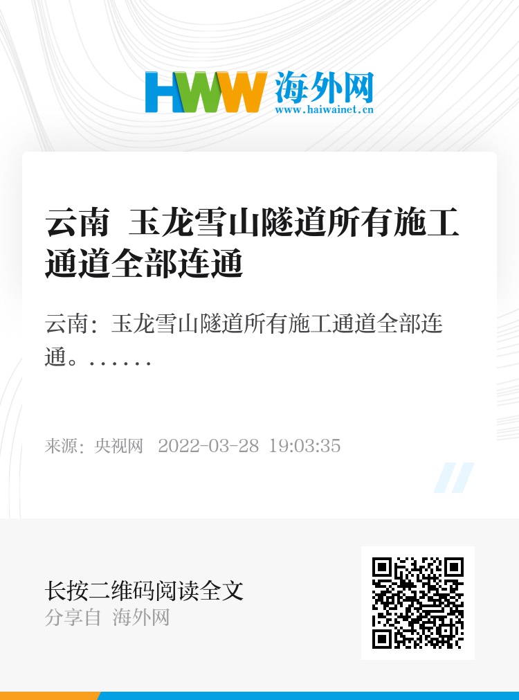 云南:玉龙雪山隧道所有施工通道全部连通。