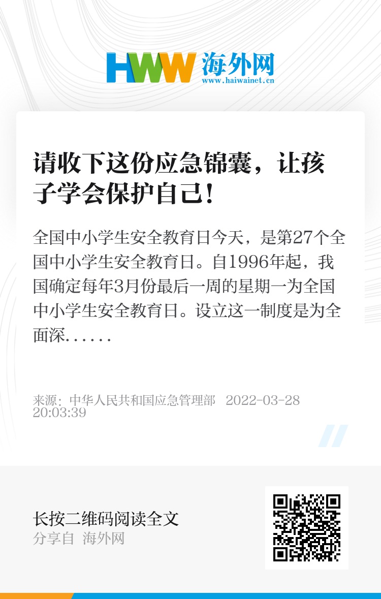 自1996年起,我国确定每年3月份最后一周的星期一为全国中小学生安全教育日。设立这一制度是为全面深入地推动中小学生安全教育工作,大力降低各类伤亡事故的发生率,切实做好中小学生的安全保护工作,促进他们健康成长。