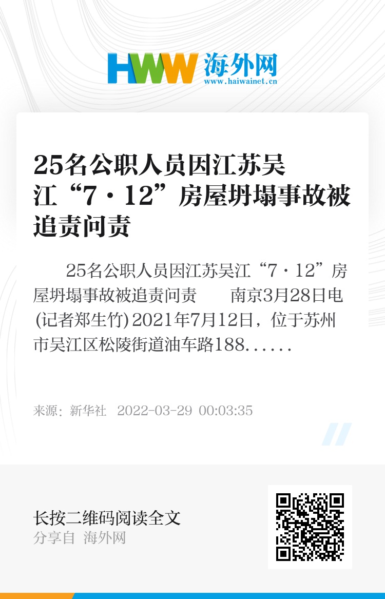 25名公职人员因江苏吴江“7·12”房屋坍塌事故被追责问责