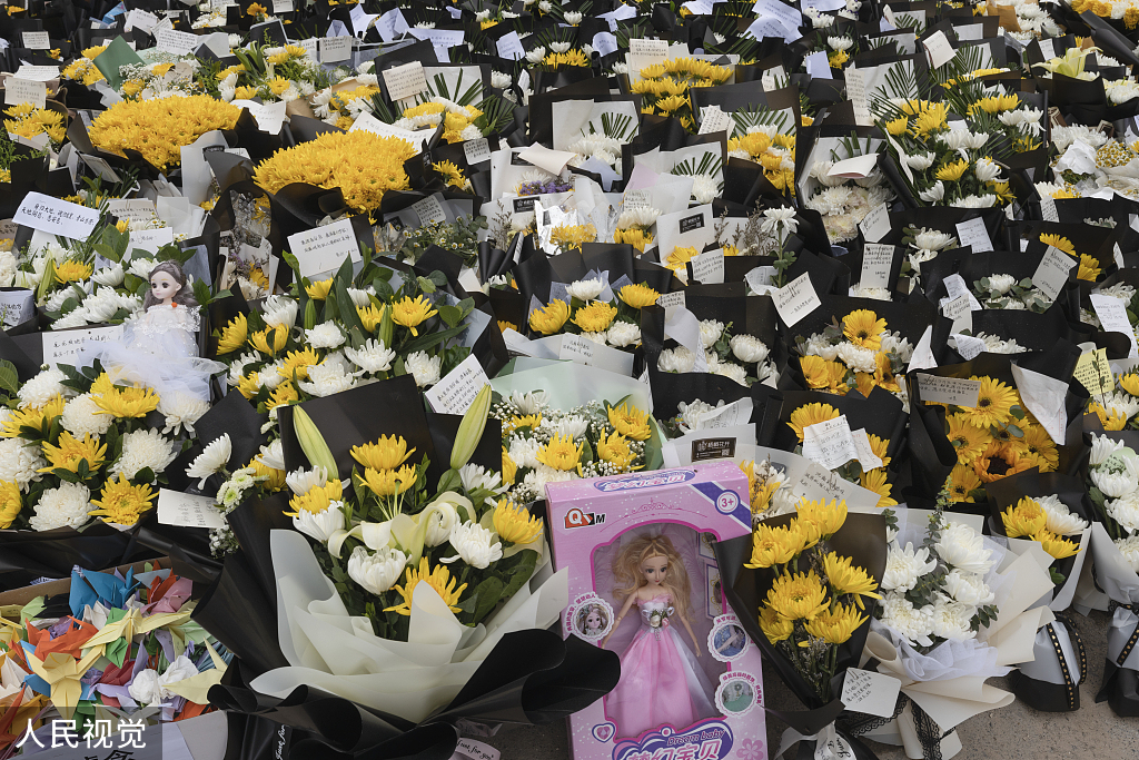 广西藤县:东航客机事故现场附近村口摆满悼念花束 群众献花遥寄哀思