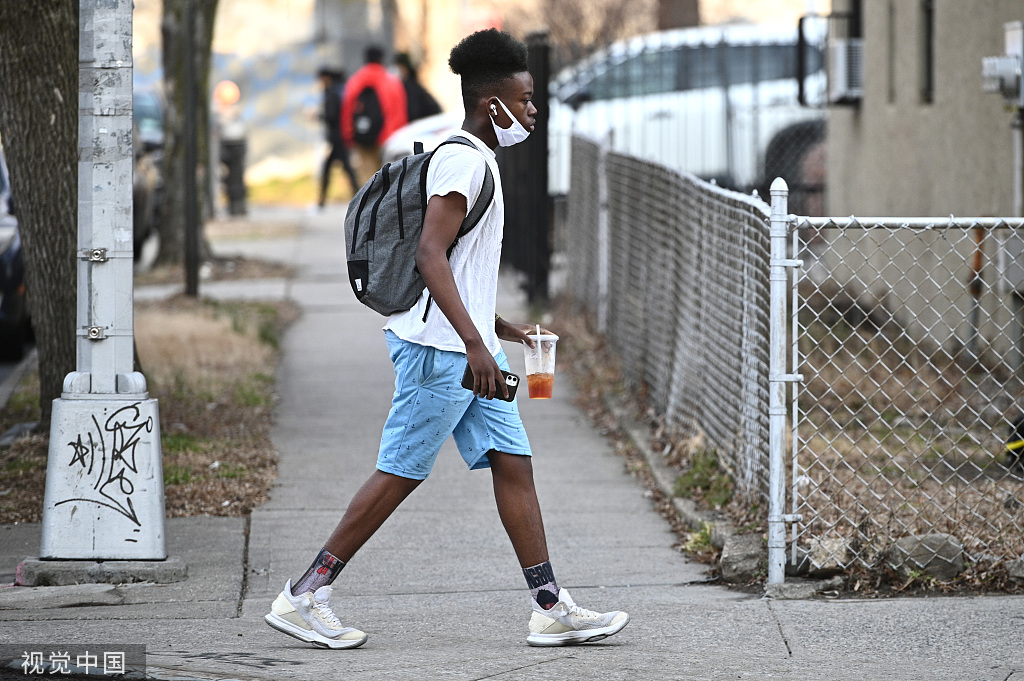 当地时间3月7日,美国纽约,学生抵达学校上课。图片来源:视觉中国