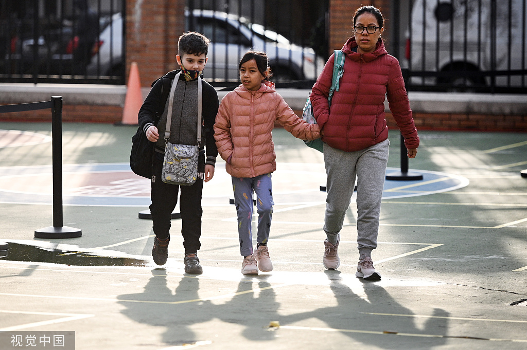 当地时间3月7日,美国纽约,学生抵达学校上课。图片来源:视觉中国