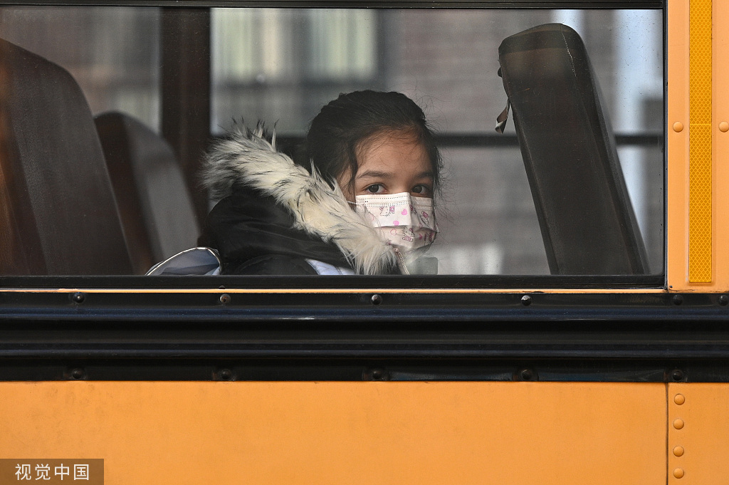 当地时间3月7日,美国纽约,学生抵达学校上课。图片来源:视觉中国