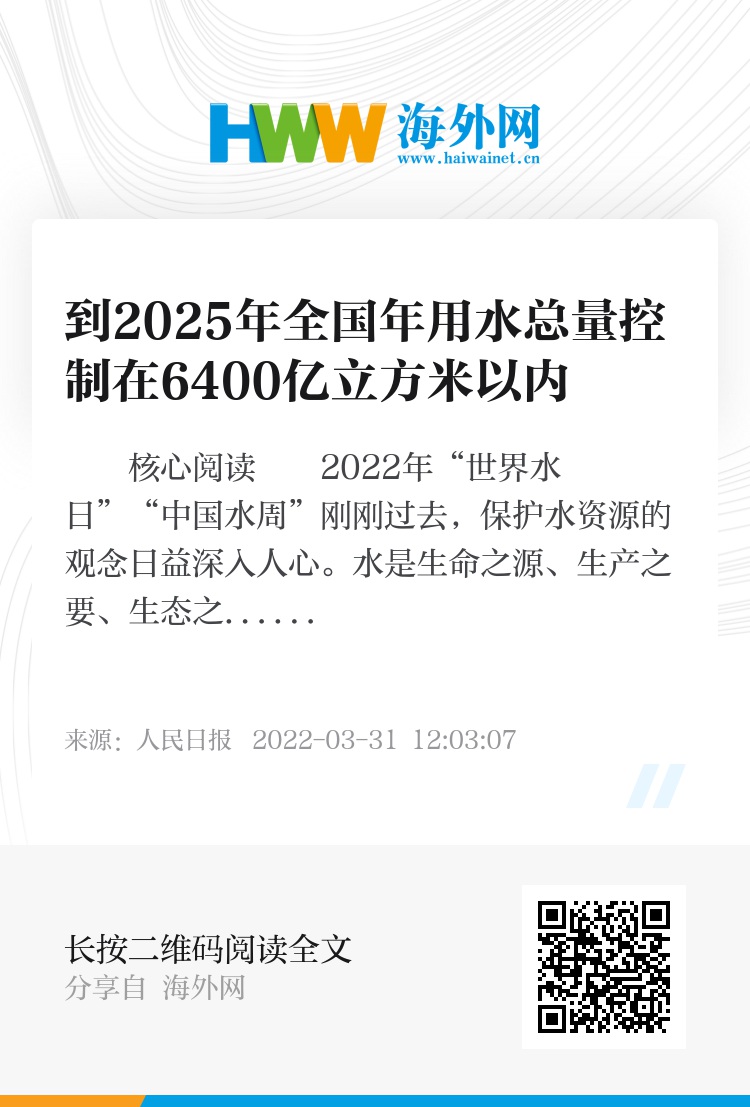《“十四五”节水型社会建设规划》提出明确要求,到2025年,全国年用水总量控制在6400亿立方米以内,万元国内生产总值用水量、万元工业增加值用水量分别比2020年降低16%左右和16%。