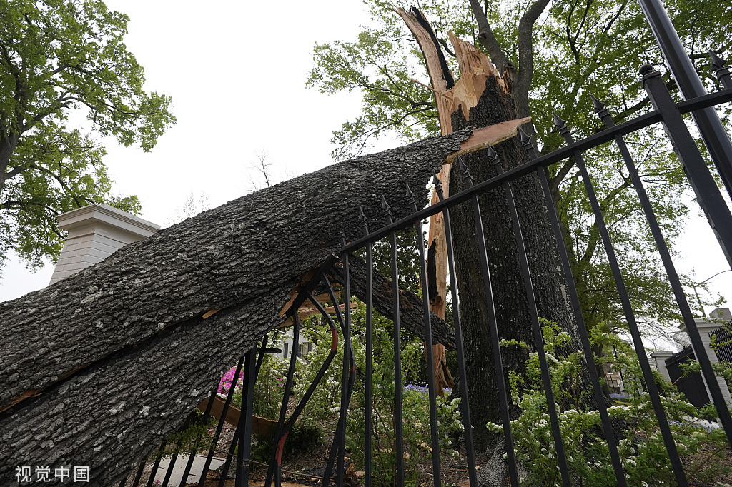 当地时间2022年3月30日,美国密西西比,当地遭遇龙卷风侵袭,市中心的树木被连根拔起。(图:视觉中国)