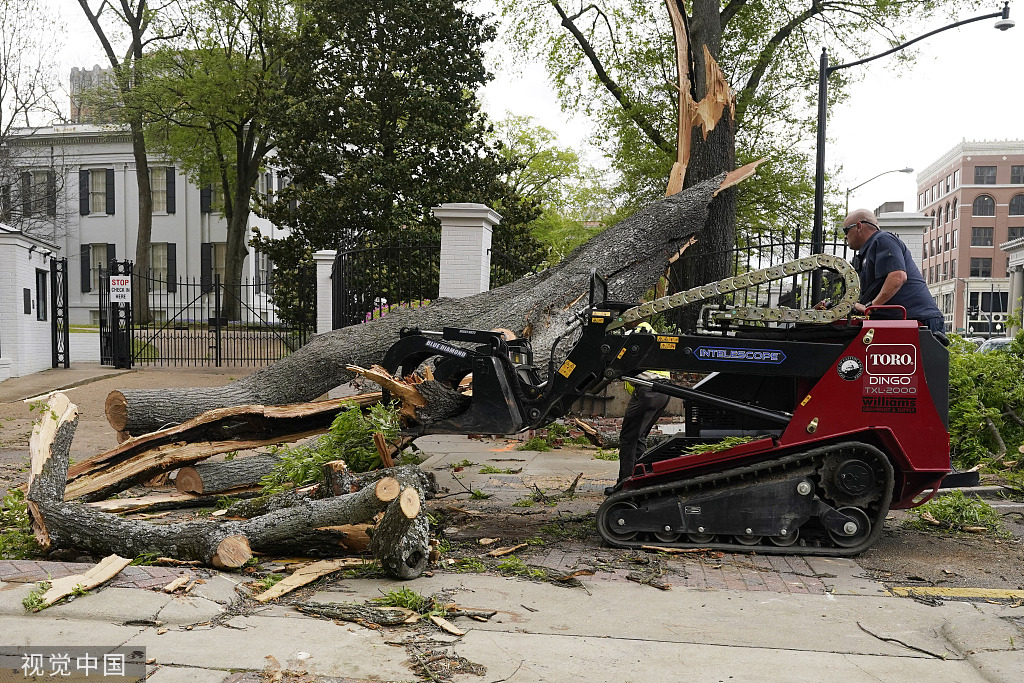当地时间2022年3月30日,美国密西西比,当地遭遇龙卷风侵袭,市中心的树木被连根拔起。(图:视觉中国)