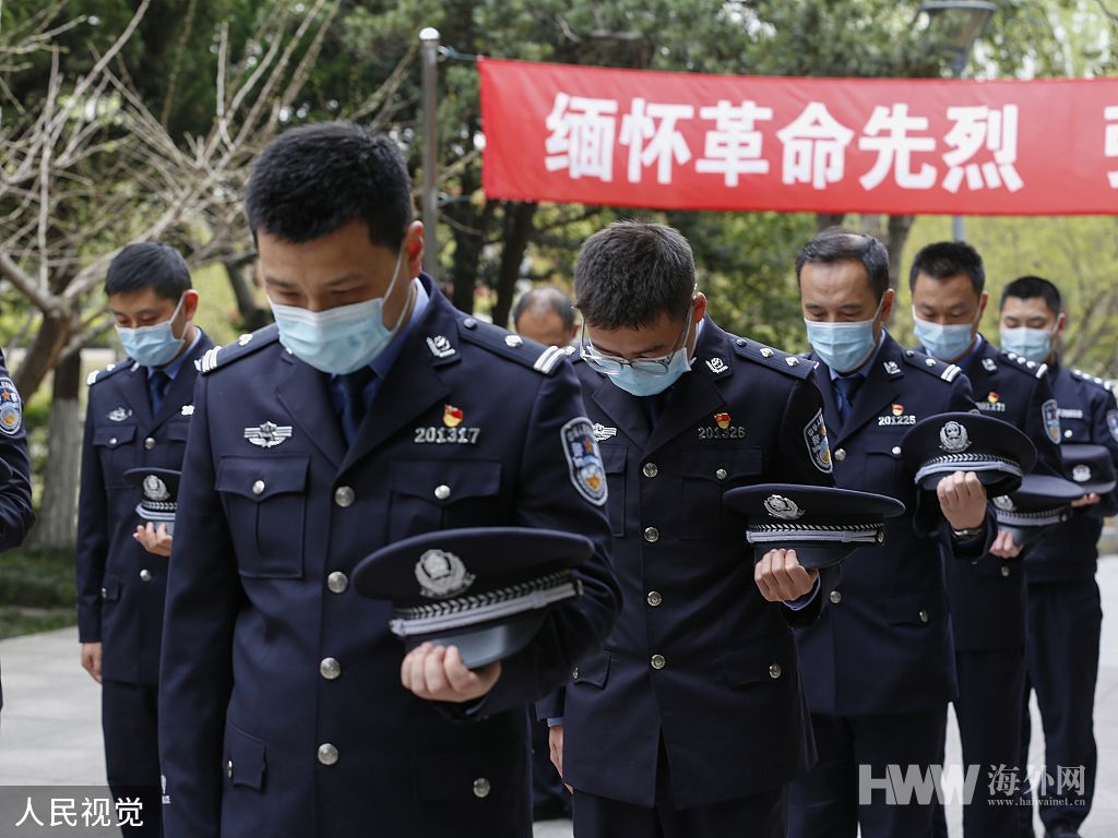 2022年3月31日,江苏出入境边防检查站总站江阴出入境边防检查站组织防疫一线执勤民警前往驻地革命烈士陵园开展清明祭扫活动,缅怀革命英烈的丰功伟绩,弘扬爱国奉献精神,坚定入警初心。(图:人民视觉)