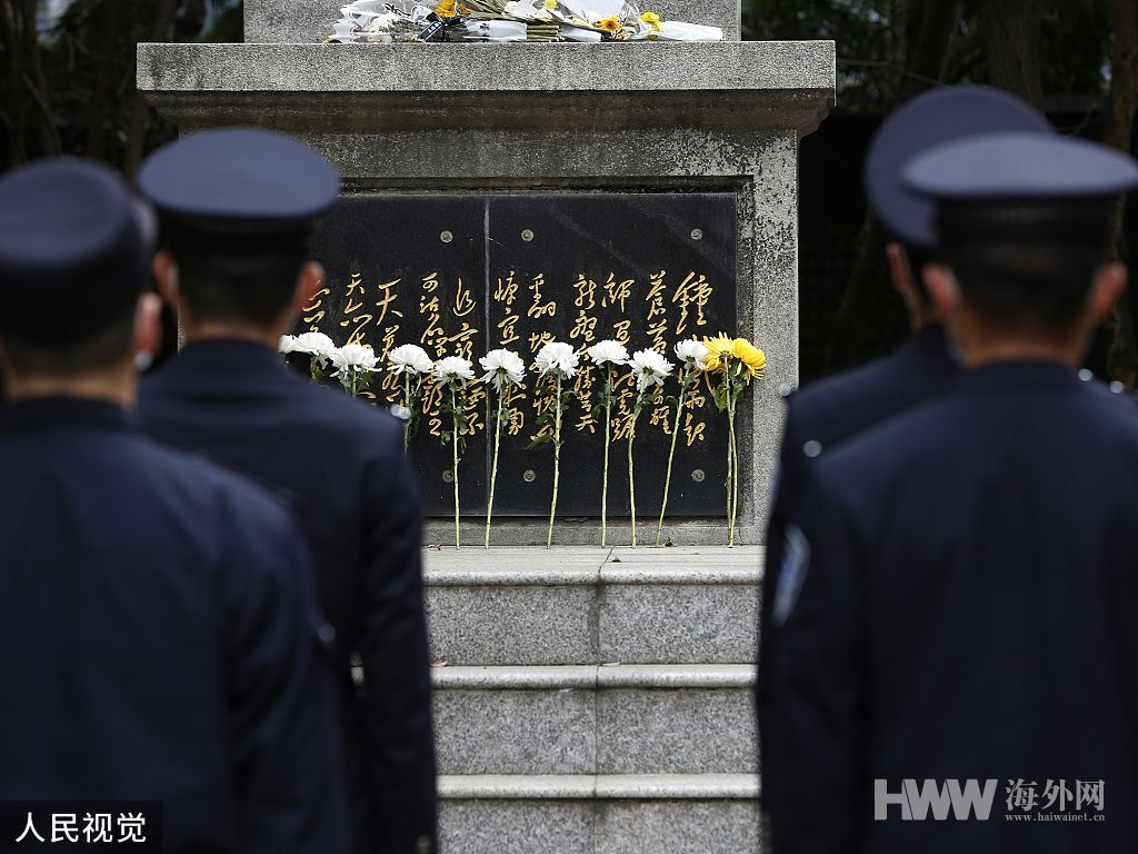 2022年3月31日,江苏出入境边防检查站总站江阴出入境边防检查站组织防疫一线执勤民警前往驻地革命烈士陵园开展清明祭扫活动,缅怀革命英烈的丰功伟绩,弘扬爱国奉献精神,坚定入警初心。(图:人民视觉)