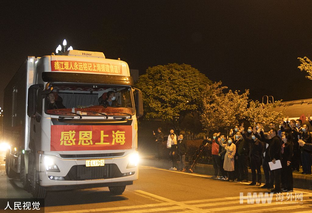 3月28日晚,十台满载着120余吨新鲜时蔬的货运车辆,从四川都江堰集结出发开往上海,在这个难忘的春日,向上海市民带去都江堰的暖心问候和美好祝愿。当日晚,十台满载着120余吨新鲜时蔬的货运车辆,从四川都江堰集结出发开往上海。据悉,都江堰市各大蔬菜基地、蔬菜种植专合组织和蔬菜龙头企业等接到供应需求后,纷纷积极响应,火速组织采摘,在最短时间内将120余吨蔬菜准备到位。(何勃/人民视觉)