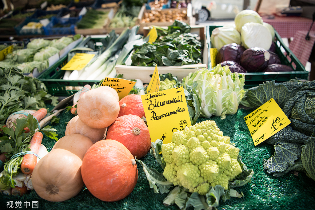 当地时间3月31日,德国柏林,当地民众在一处每周开放一次的露天市场选购商品。图片来源:视觉中国