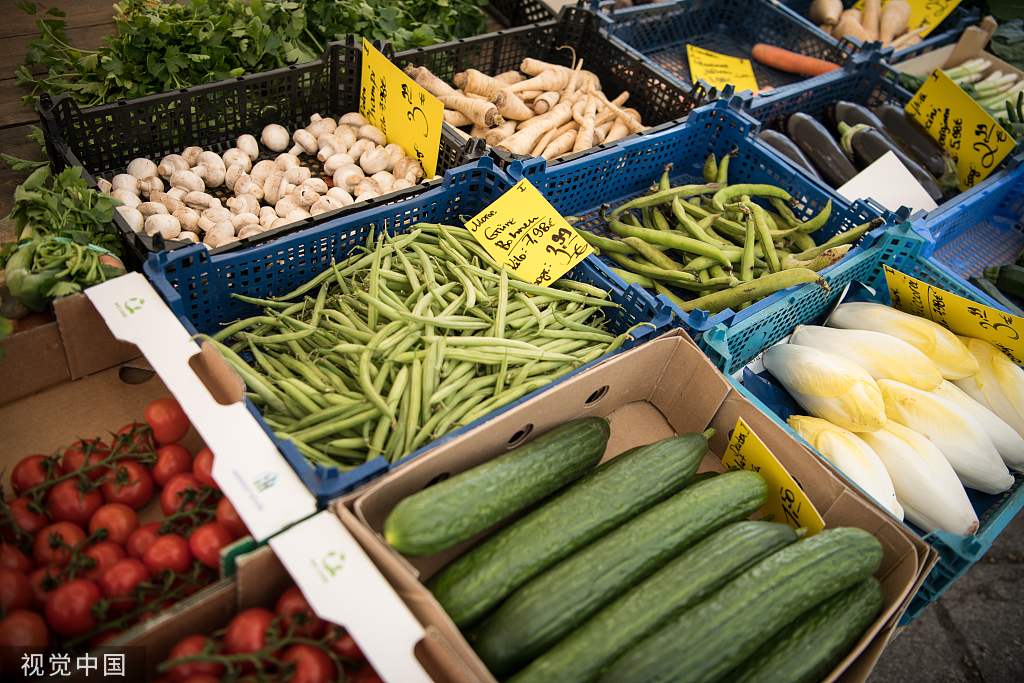 当地时间3月31日,德国柏林,当地民众在一处每周开放一次的露天市场选购商品。图片来源:视觉中国