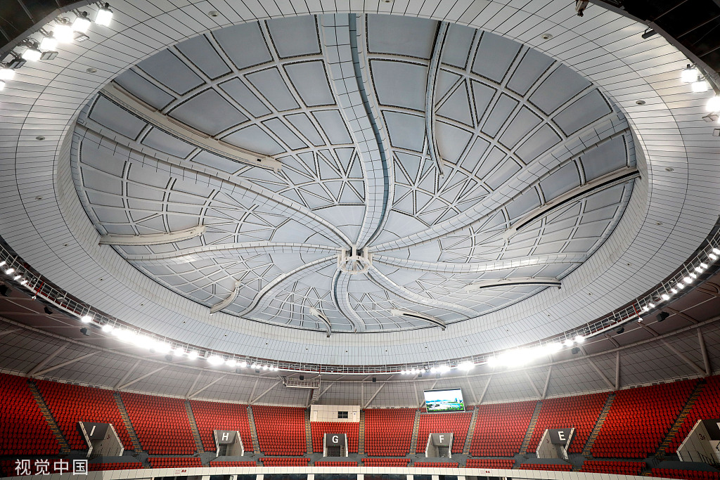 2022年3月31日,杭州奥体中心网球中心“小莲花”内部闭合景观。图片来源:视觉中国