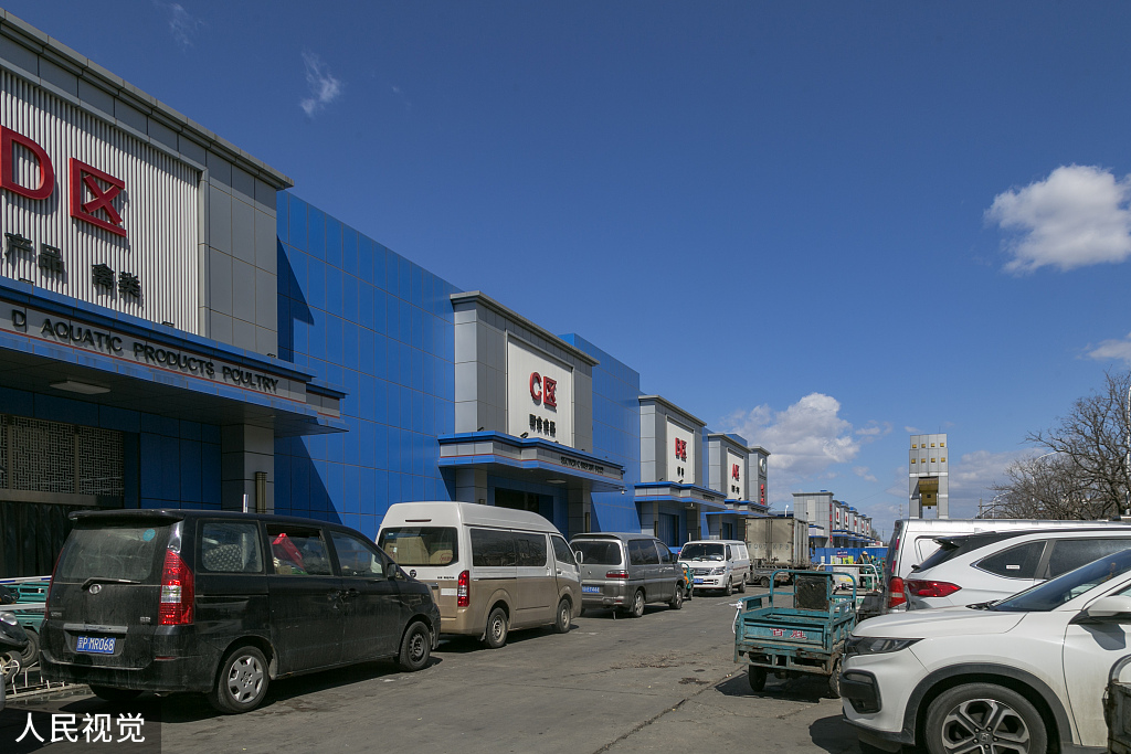 3月31日上午,北京通州区八里桥市场香蕉批发区实行封控措施,其他区域正常营业。3月29日-30日,北京市通州区八里桥市场香蕉批发区6号摊位库房香蕉外包装以及库房环境检出新型冠状病毒核酸阳性。图片来源:人民视觉