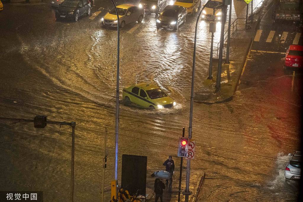 当地时间4月1日,巴西里约热内卢,当地遭遇特大暴雨引发城市内涝,道路积水严重。图片来源:视觉中国