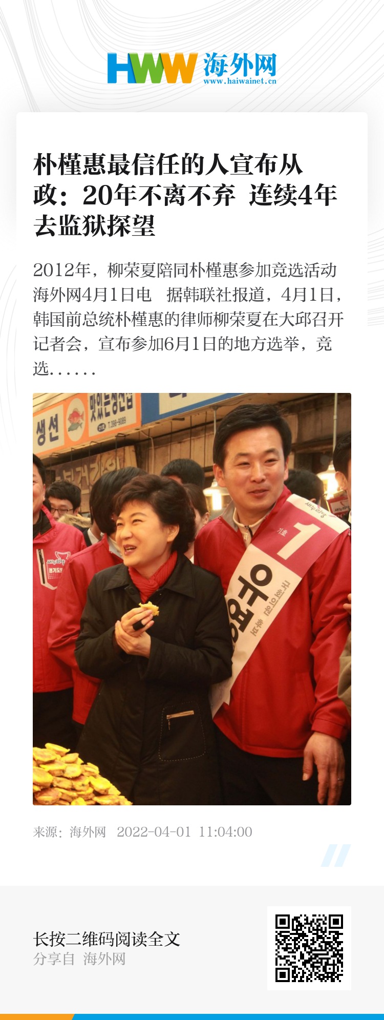 海外网4月1日电 据韩联社报道,4月1日,韩国前总统朴槿惠的律师柳荣夏在大邱召开记者会,宣布参加6月1日的地方选举,竞选大邱市长。他还说朴槿惠委任自己担任后援会会长。大邱是韩国保守派的大本营,也是朴槿惠的“政治故乡”。