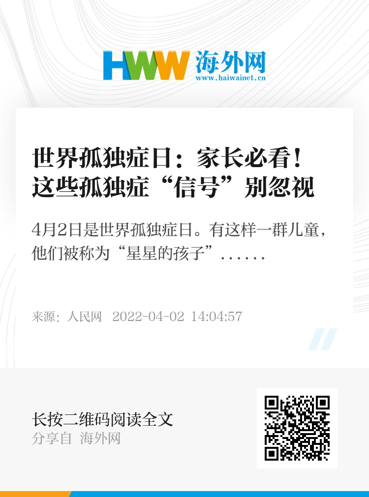 4月2日是世界孤独症日。有这样一群儿童,他们被称为“星星的孩子”。他们目光澄亮,却对人视而不见;听觉灵敏,却对父母的呼唤充耳不闻;发声正常,却不与他人交流……他们,只是一群普通的孩子,却被孤独症夺去了光芒与色彩。
