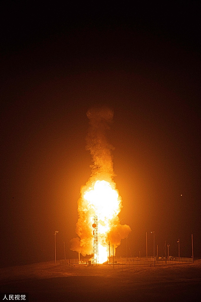 当地时间2020年8月4日,美国空军当日成功进行了一次“民兵”3型洲际弹道导弹的试射。据美国空军全球打击司令部8月4日在其官网上发布的消息,当天凌晨0点21分,美国空军全球打击司令部在加州范登堡空军基地发射了一枚未安装弹头的“民兵”3型洲际弹道导弹。图片来源:人民视觉