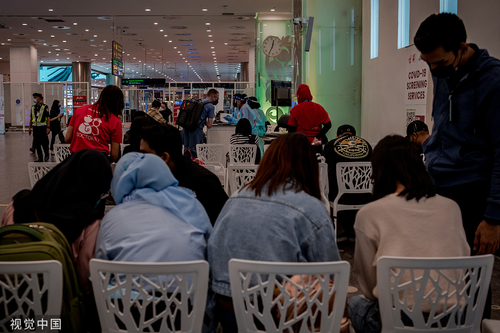 当地时间4月1日,马来西亚雪兰莪州,旅客聚集在吉隆坡机场内。图片来源:视觉中国