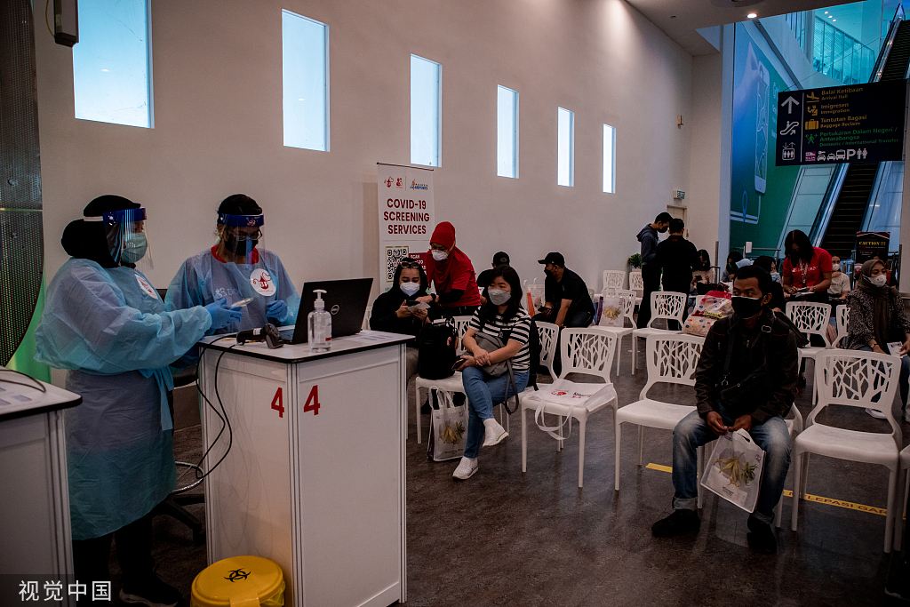 当地时间4月1日,马来西亚雪兰莪州,旅客聚集在吉隆坡机场内。图片来源:视觉中国