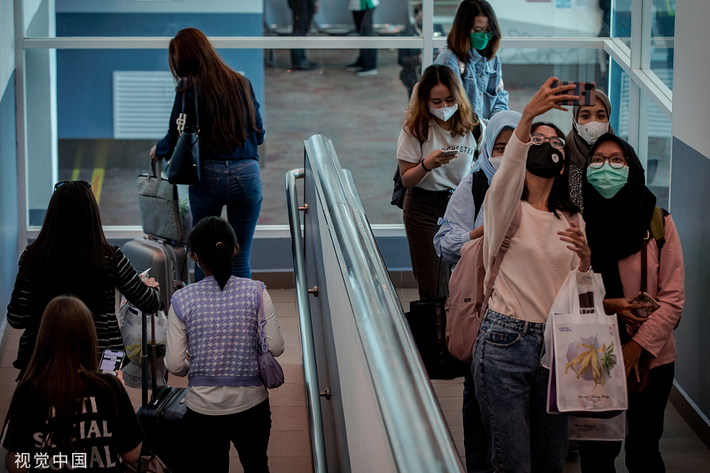 当地时间4月1日,马来西亚雪兰莪州,旅客聚集在吉隆坡机场内。图片来源:视觉中国
