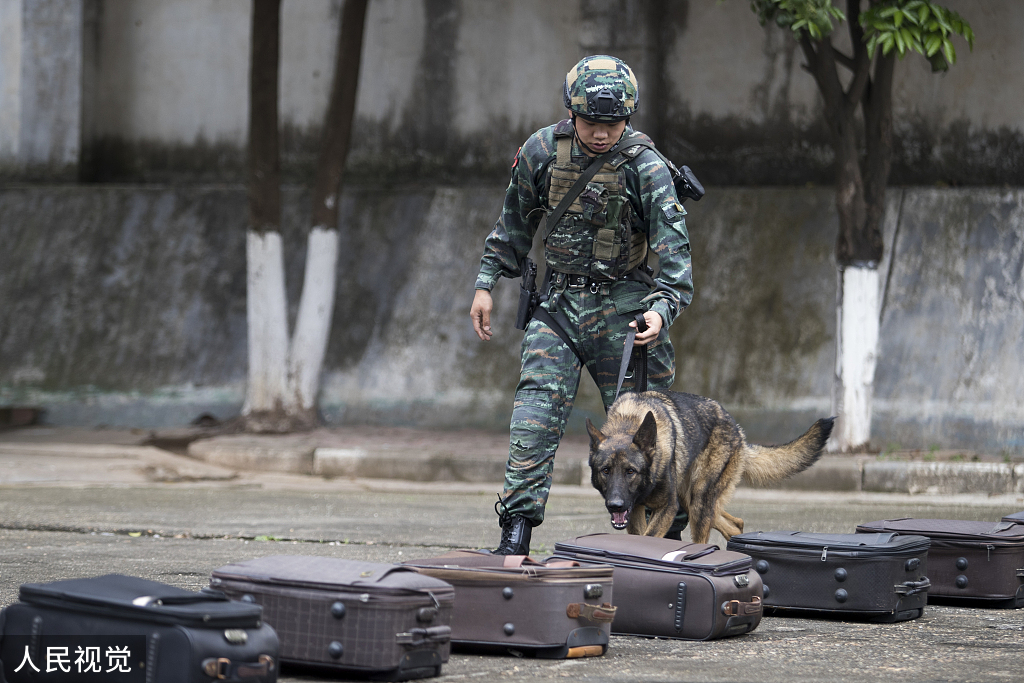 4月2日,武警广西总队机动支队组织训导员携军犬开展战术越障、协同追击、侦察搜索等课目的强化训练,进一步锤炼军犬的服从能力和技战素养,为遂行多样化任务奠定基础。图片来源:人民视觉
