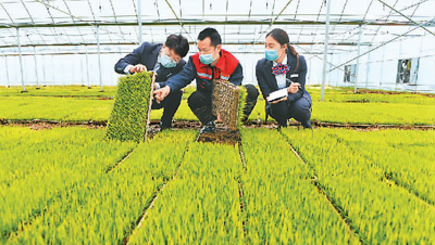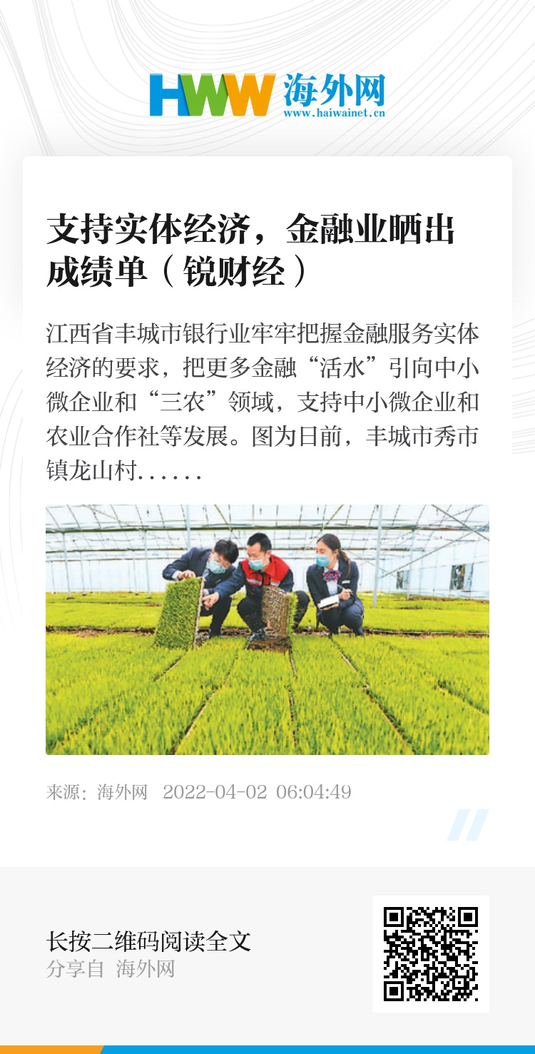 江西省丰城市银行业牢牢把握金融服务实体经济的要求,把更多金融“活水”引向中小微企业和“三农”领域,支持中小微企业和农业合作社等发展。图为日前,丰城市秀市镇龙山村一家合作社负责人向九江银行丰城支行的工作人员介绍早稻育秧情况。 周 亮摄(人民视觉)