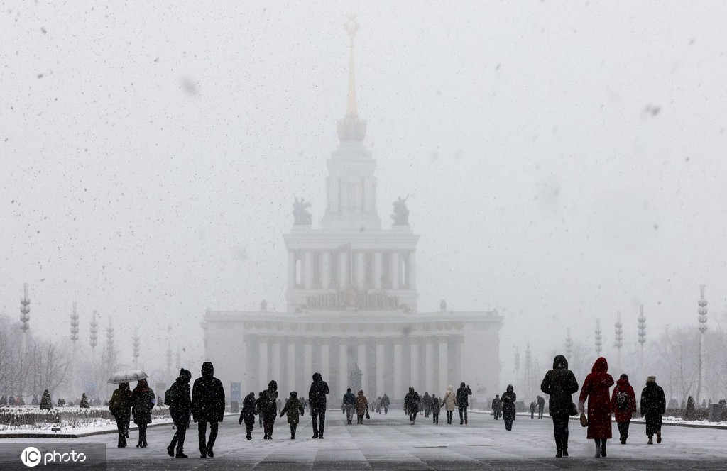 当地时间4月2日,俄罗斯莫斯科,当地迎来大雪,整个莫斯科银装素裹。图片来源: IC photo