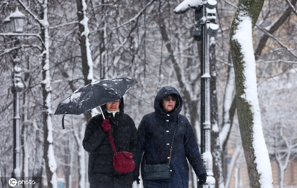 当地时间4月2日,俄罗斯莫斯科,当地迎来大雪,整个莫斯科银装素裹。图片来源: IC photo
