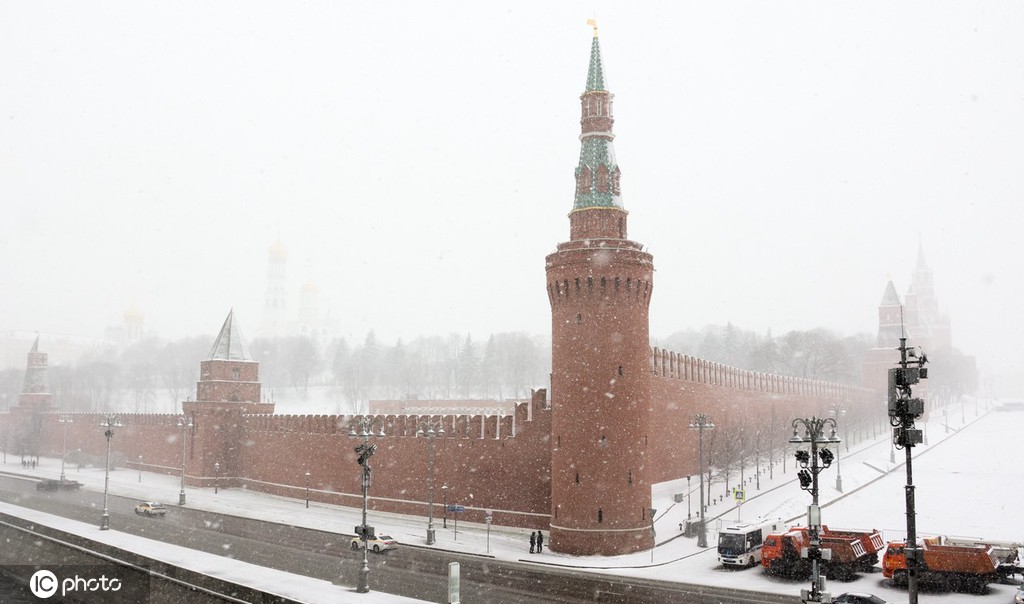 当地时间4月2日,俄罗斯莫斯科,当地迎来大雪,整个莫斯科银装素裹。图片来源: IC photo