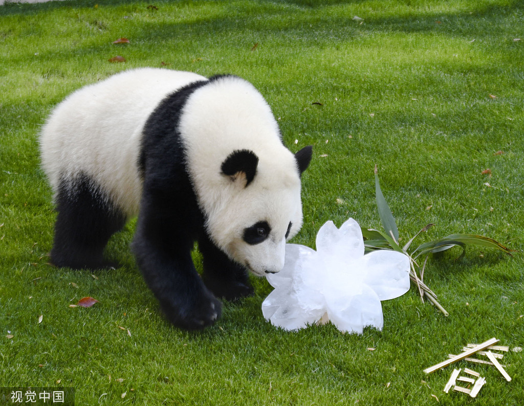 当地时间2022年4月5日,日本和歌山县白浜町,和歌山白浜野生动物园内大熊猫幼崽Fuhin在独自玩耍。图源:视觉中国