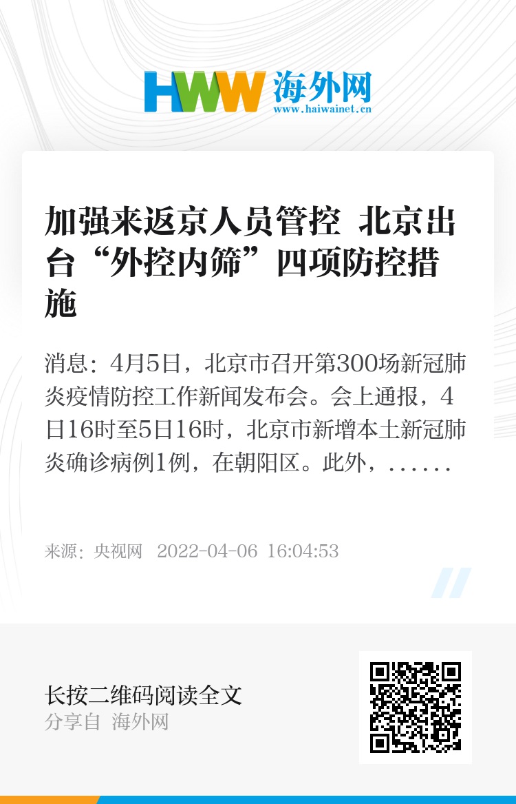 此外,发布会上还通报了北京市在继续落实现有防控措施基础上,出台进一步加强“外控内筛”四项措施。