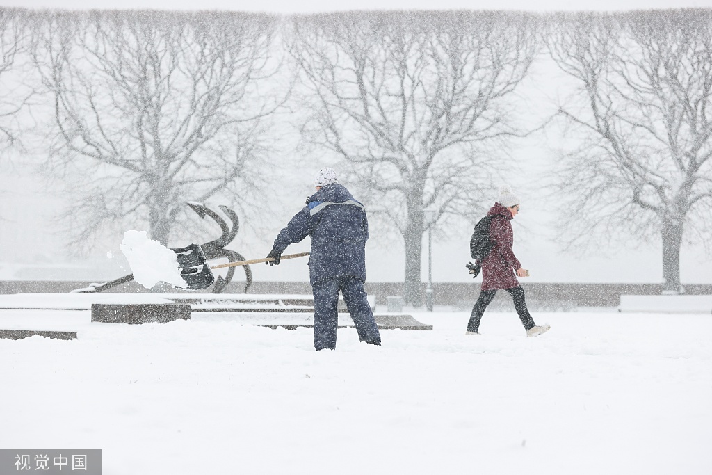 俄罗斯圣彼得堡迎来强降雪天气 皑皑白雪一片纯白世界