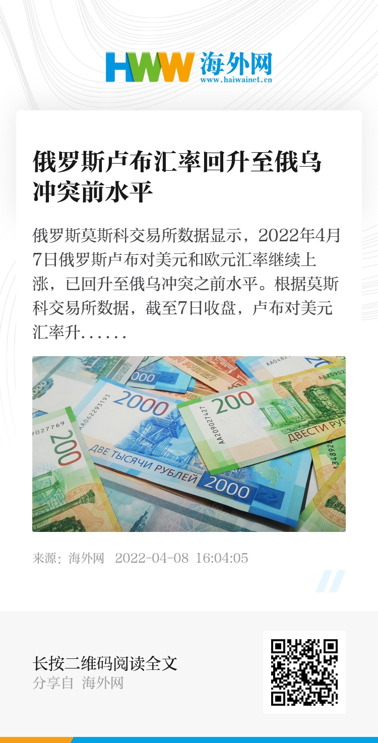 32385143,.俄罗斯卢布汇率回升至俄乌冲突前水平,.2022-04-08 16:56:05,.204428,.张青津、庄鹏泽