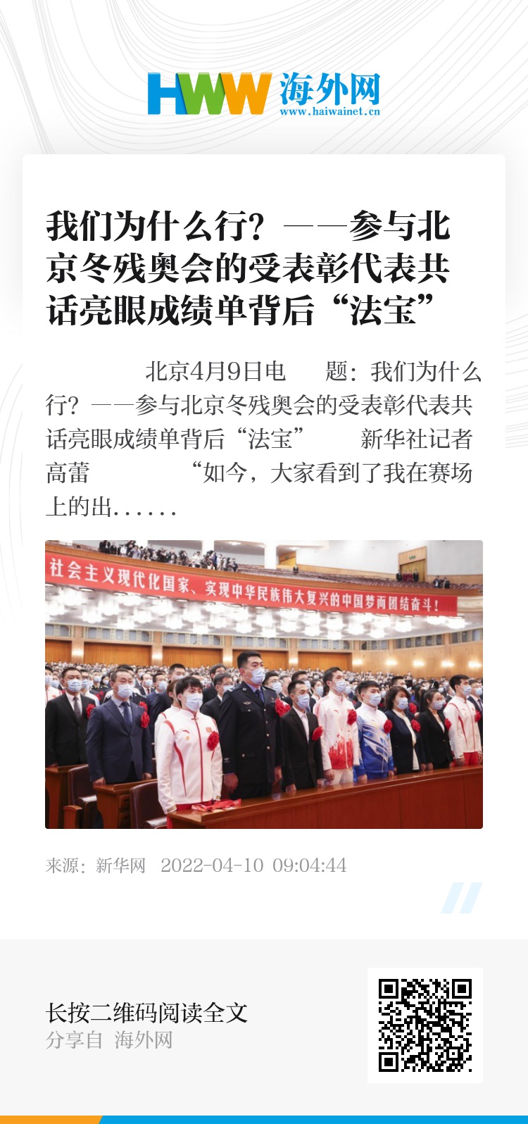 新华社北京4月9日电 题:我们为什么行?――参与北京冬残奥会的受表彰代表共话亮眼成绩单背后“法宝”