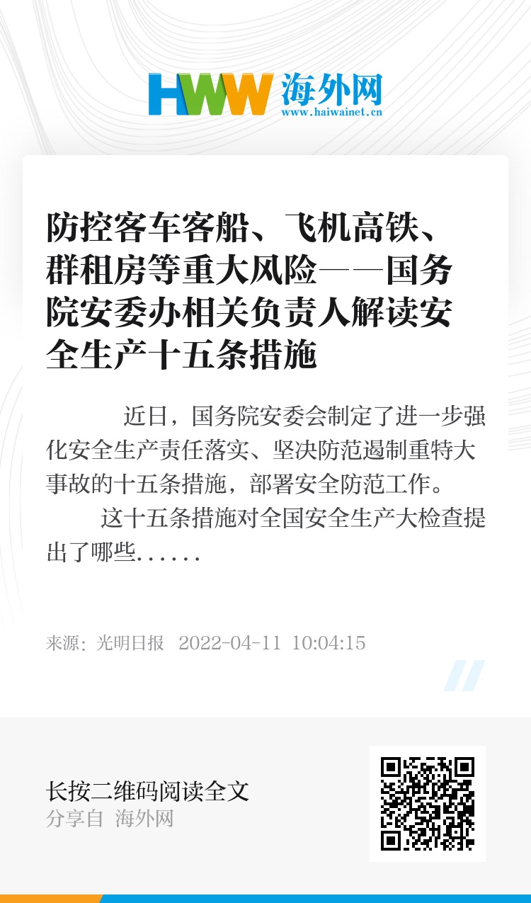 近日,国务院安委会制定了进一步强化安全生产责任落实、坚决防范遏制重特大事故的十五条措施,部署安全防范工作。