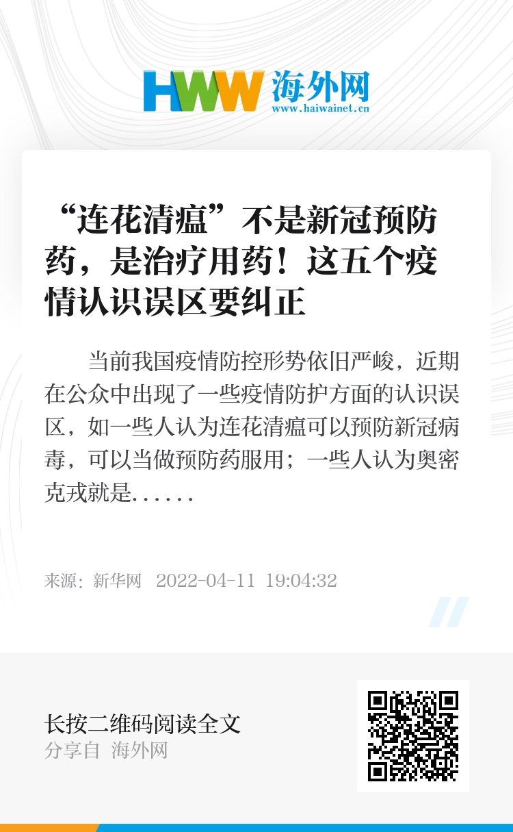 正解:“连花清瘟”不是新冠预防药,是治疗用药,提前口服不能预防新冠