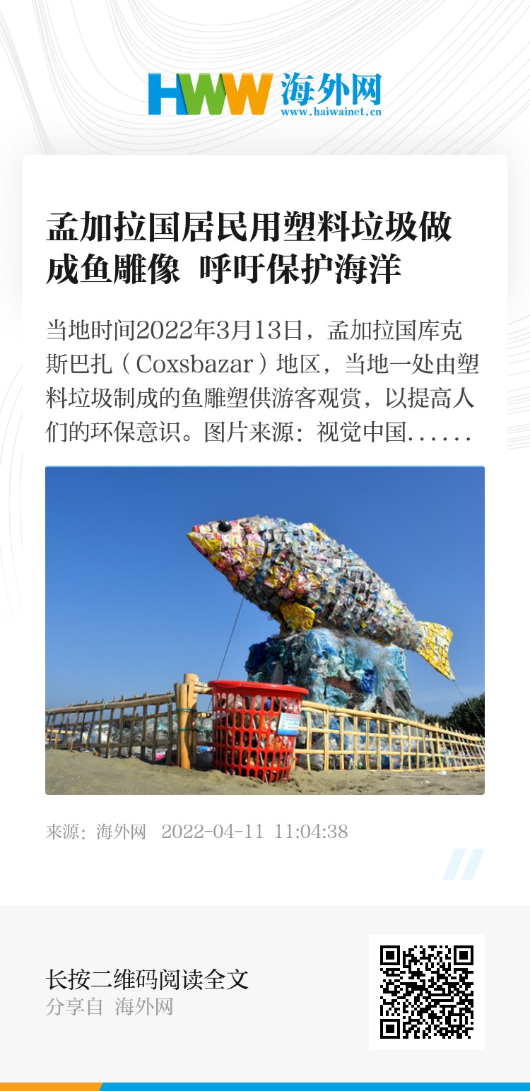 32387094,.孟加拉国居民用塑料垃圾做成鱼雕像 呼吁保护海洋,.2022-04-11 11:58:38,.204524,.庄鹏泽、张青津