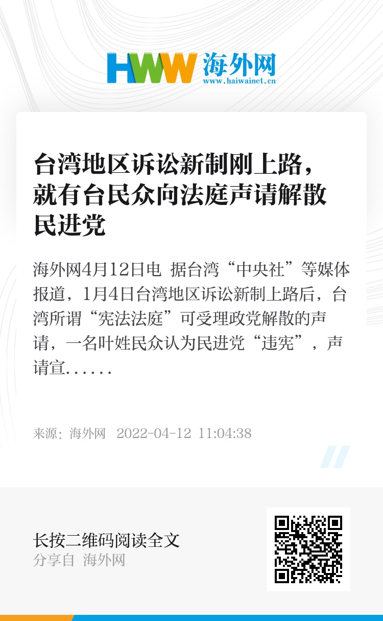 海外网4月12日电 据台湾“中央社”等媒体报道,1月4日台湾地区诉讼新制上路后,台湾所谓“宪法法庭”可受理政党解散的声请,一名叶姓民众认为民进党“违宪”,声请宣告政党解散。但法庭认为,声请人非主管机关,与声请要件不符,裁定不受理。不过,台网友则在规定描述中发现了一个“bug”。