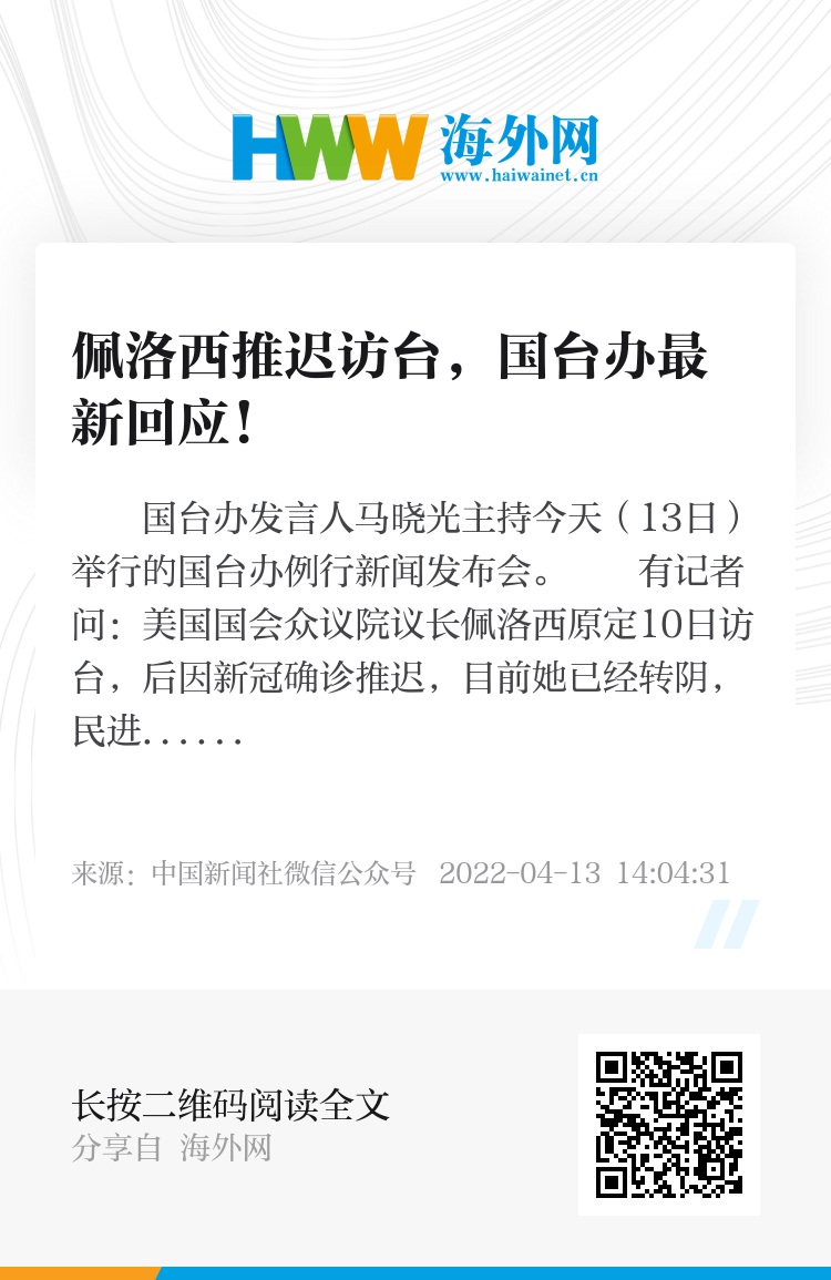 有记者问:美国国会众议院议长佩洛西原定10日访台,后因新冠确诊推迟,目前她已经转阴,民进党当局在积极邀访。请问对此有何评论?