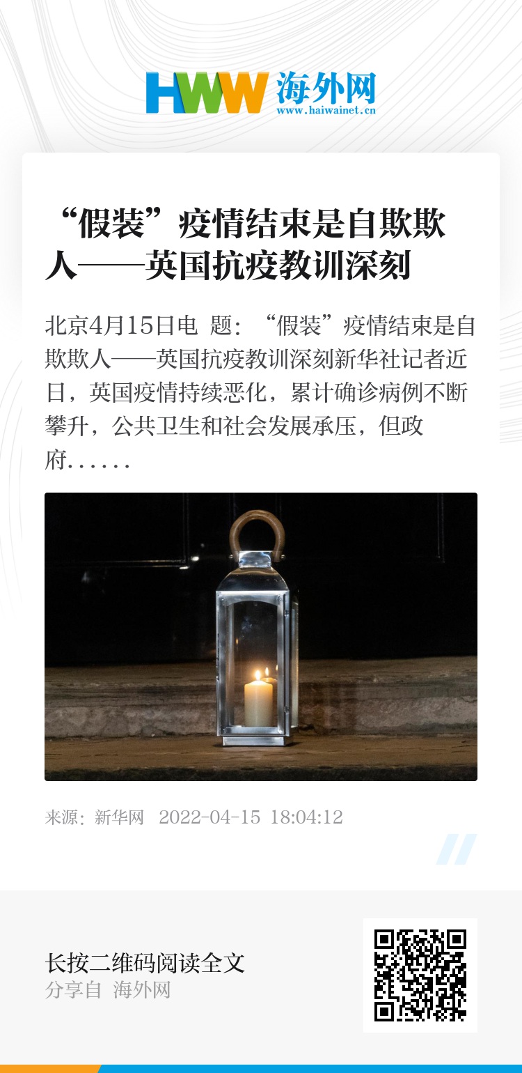新华社北京4月15日电 题:“假装”疫情结束是自欺欺人——英国抗疫教训深刻