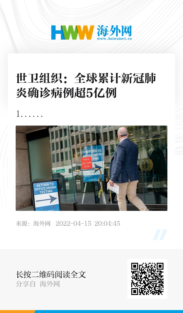 32391777,.世卫组织:全球累计新冠肺炎确诊病例超5亿例,.2022-04-15 20:10:45,.204198,.侯兴川
