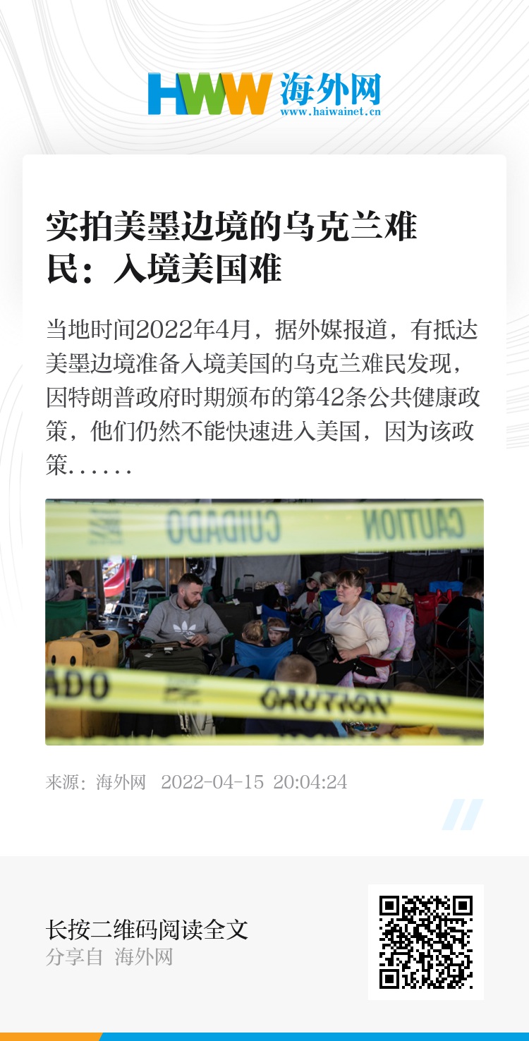 当地时间2022年4月,据外媒报道,有抵达美墨边境准备入境美国的乌克兰难民发现,因特朗普政府时期颁布的第42条公共健康政策,他们仍然不能快速进入美国,因为该政策要到5月23日才到期,届时美墨边境才能开放。报道称,这些人不得不在墨西哥边境蒂华纳市一个临时难民点等待。最近几天,数百名乌克兰人挤在一起,排起长长的队伍,等待志愿者分发披萨和其他零食,也用大家捐赠的钱,支付在附近临时搭起的隔间厕所的使用权。(图:澎湃影像)