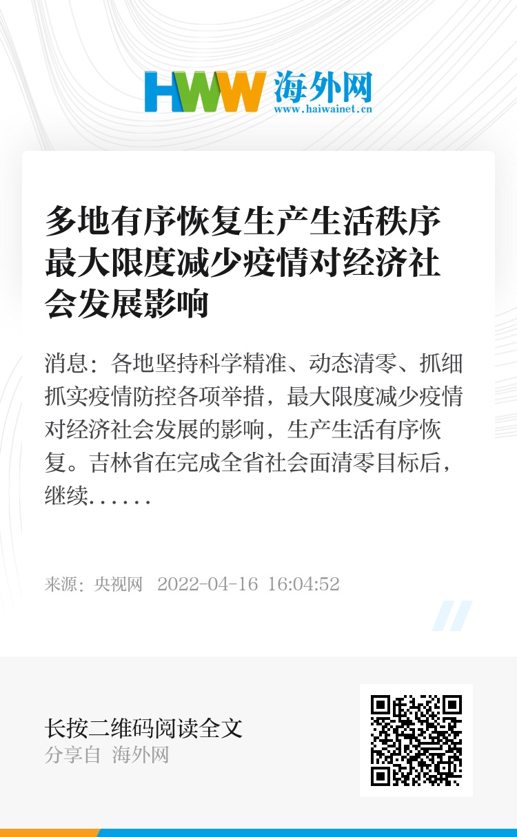 央视网消息:各地坚持科学精准、动态清零、抓细抓实疫情防控各项举措,最大限度减少疫情对经济社会发展的影响,生产生活有序恢复。