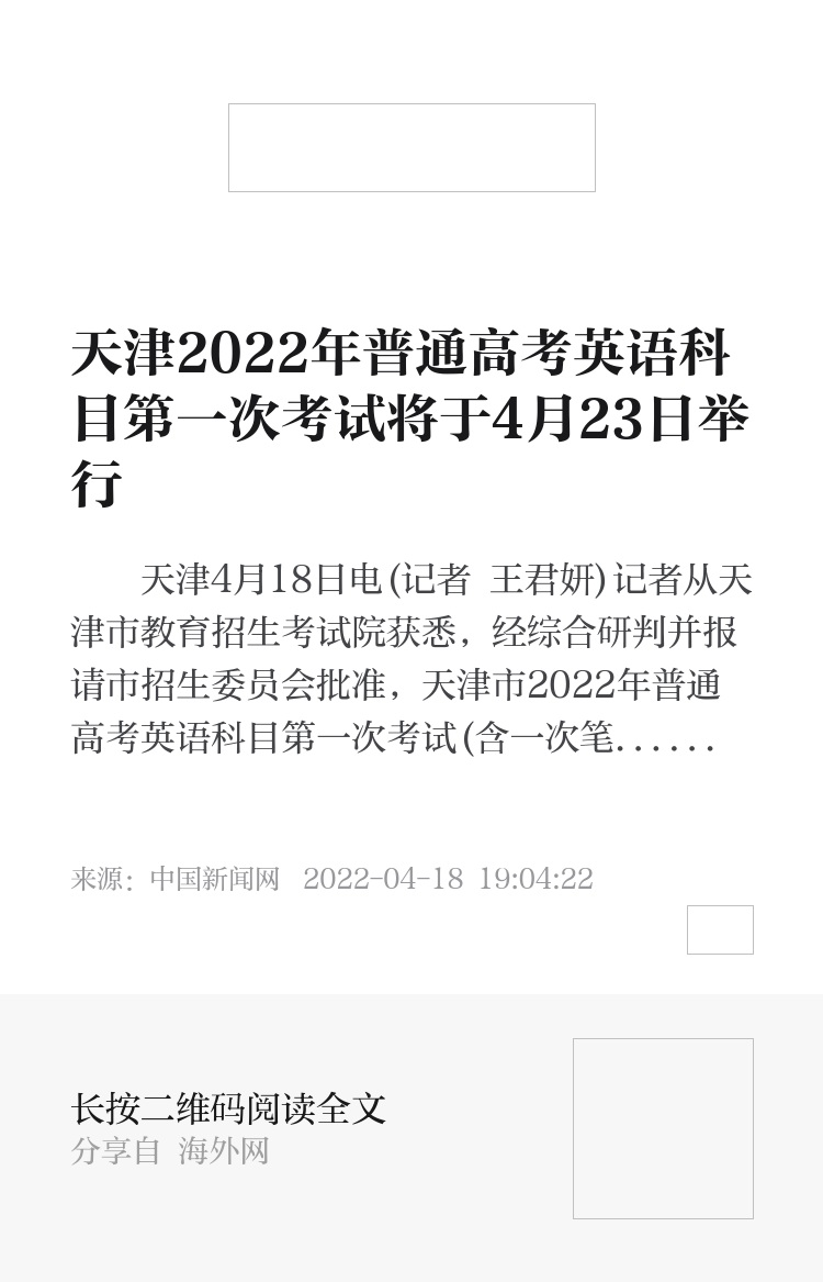 英语科目第一次考试的安排和防疫要求,将根据我市疫情发展变化的情况,做出必要调整。请考生和家长密切关注招考资讯网(www.zhaokao.net)和“天津市教育招生考试院”微信公众号发布的信息。(完)