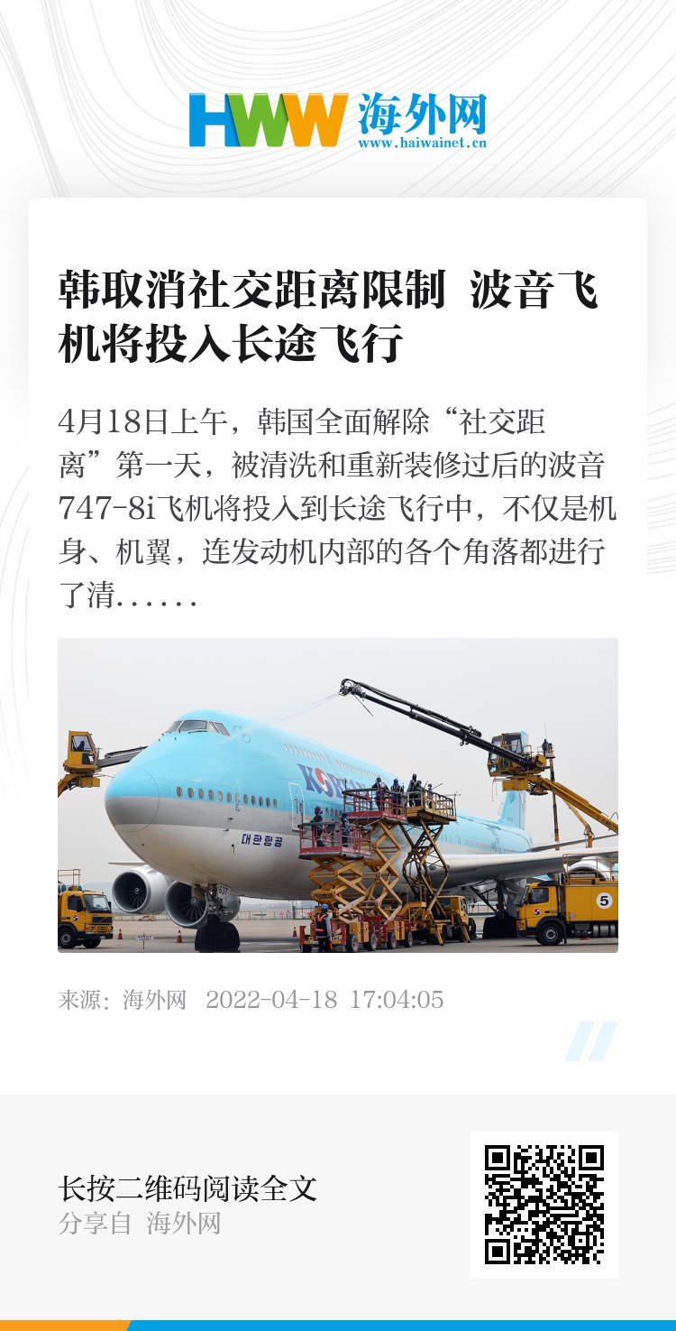 32393984,.韩取消社交距离限制 波音飞机将投入长途飞行,.2022-04-18 17:15:05,.204428,.张青津、侯兴川