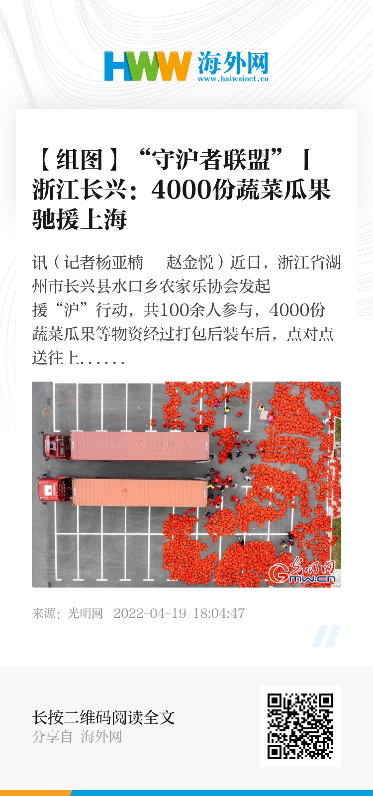 光明网讯(记者杨亚楠 赵金悦)近日,浙江省湖州市长兴县水口乡农家乐协会发起援“沪”行动,共100余人参与,4000份蔬菜瓜果等物资经过打包后装车后,点对点送往上海市虹口区。作为长三角乡村旅游产业集聚区,水口乡共有各类乡村民宿近600家,其中上海游客比例占到65%左右,有“上海村”之美誉。