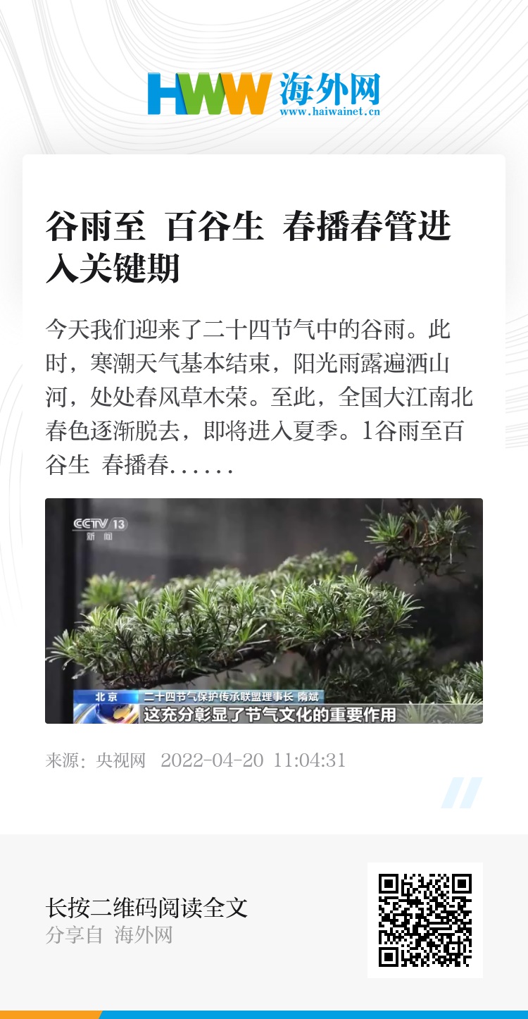 1谷雨至百谷生 春播春管进入关键期